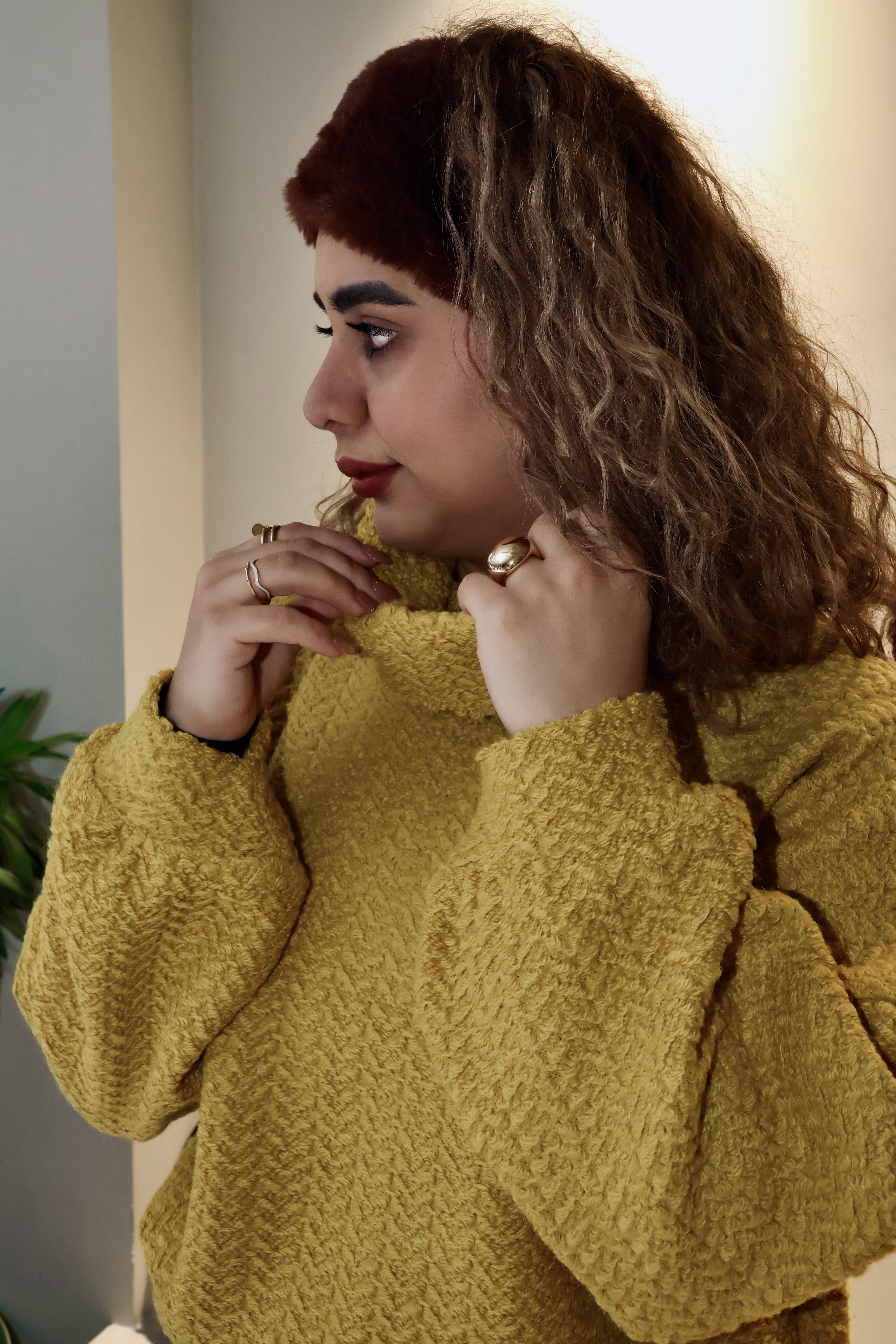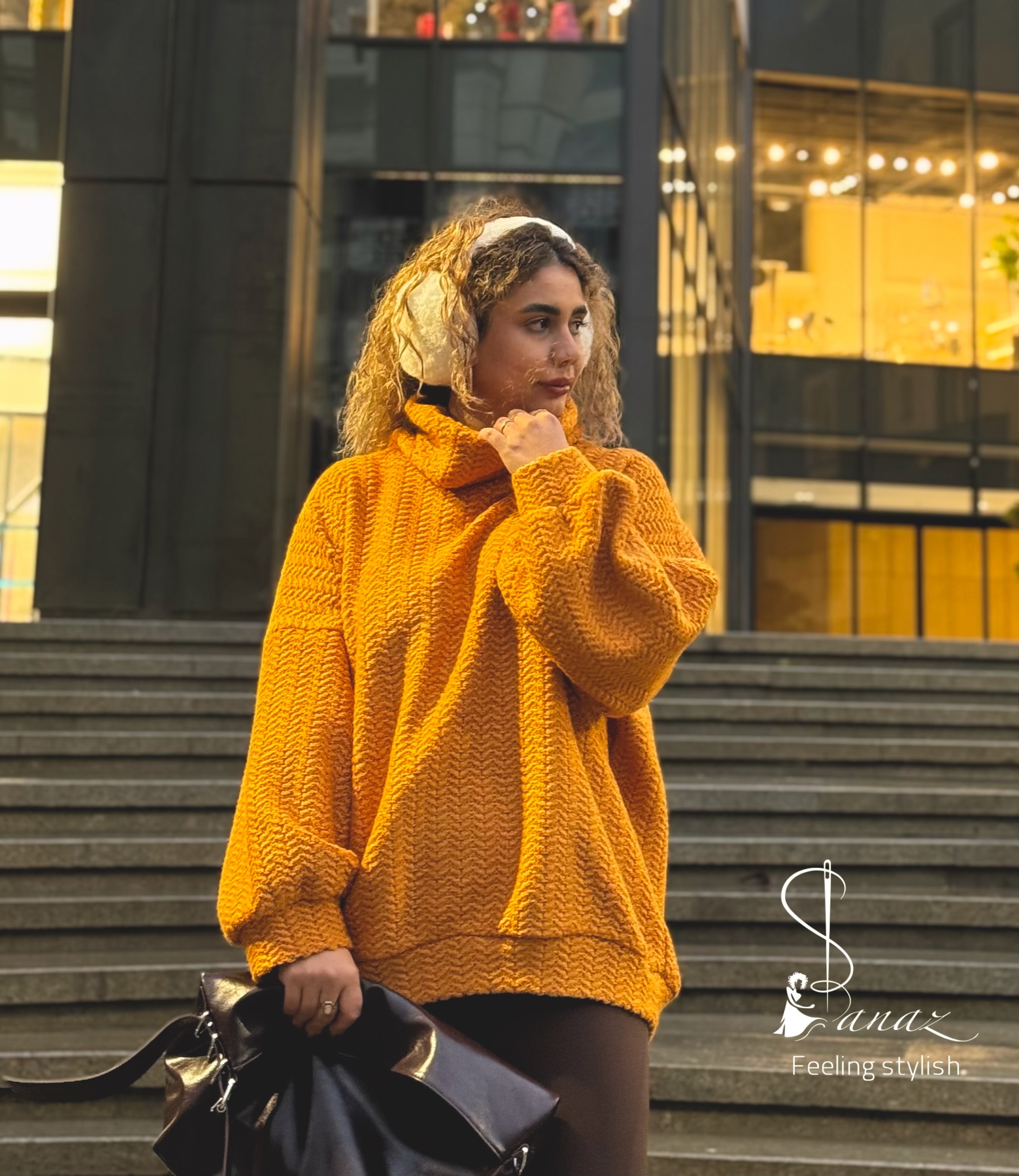 پلیور اورسایز زنانه جنس پشمی گرم یقه اسکی
